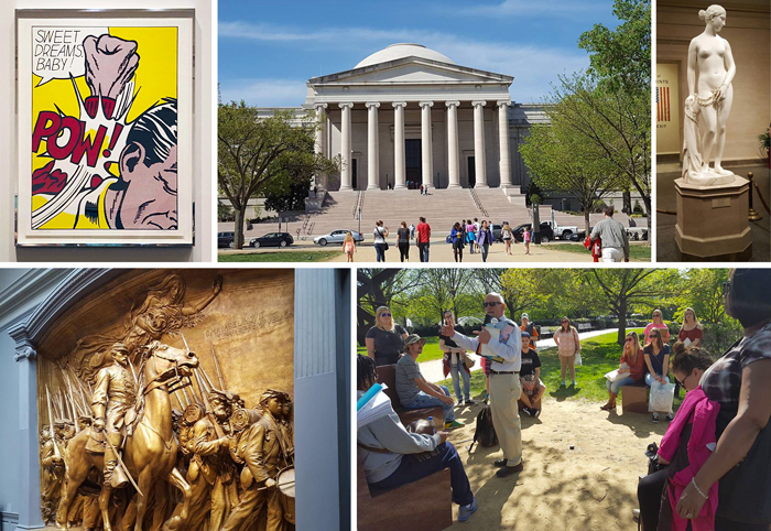 The History of American Art students had a perfect spring day to enjoy art (indoors and out), sunshine and camaraderie on their trip with Dr. Fred Adelson and Professor Herb Appelson. They visited the National Gallery of Art and the National Sculpture Garden in Washington, D.C. Thanks to Rachel Kozic for sharing these photos.