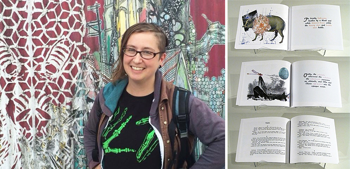 She completed a collaborative artist residency program at D'Clinic Studios in Lendava, Slovenia, July 2014, and more recently was a Visiting Artist at Maine College of Art, Portland, Maine. She has had work exhibited across the United States as well as Slovenia, Hungary, and South Korea. She is currently working towards completion of new work for Liber Mundi, an internationally traveling group show of artist books and zines debuting Spring 2016. She received her MFA in Book Arts and Printmaking from The University of the Arts, Philadelphia (2013) and her BFA in intermedia from Pacific Northwest College of Art, Portland, Oregon (2004).